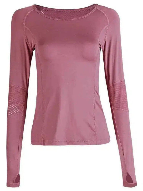 Atasan Atletik Lengan Panjang Wanita dengan Panel Jaring