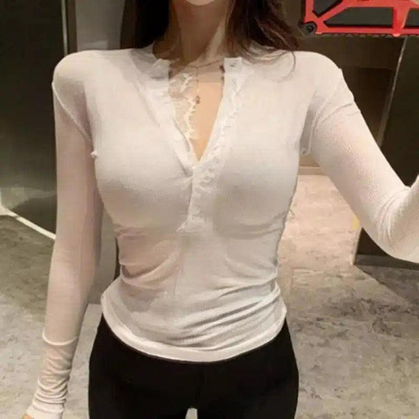 Atasan Atasan Renda Renda Lengan Panjang Wanita