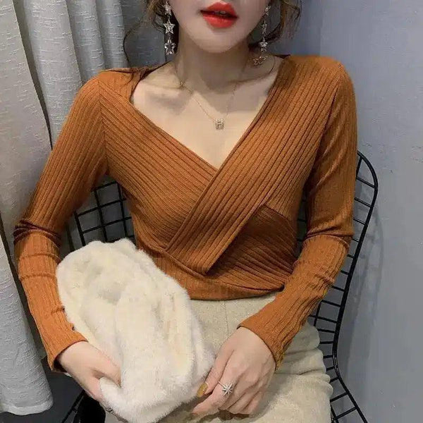 Sweater Rajut Leher V untuk Wanita