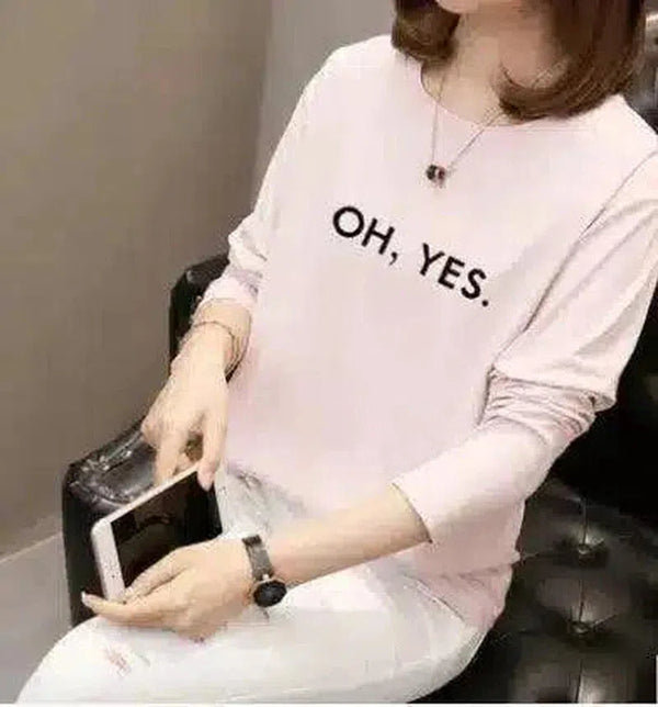 Kaos Slogan Kasual Lengan Panjang Wanita