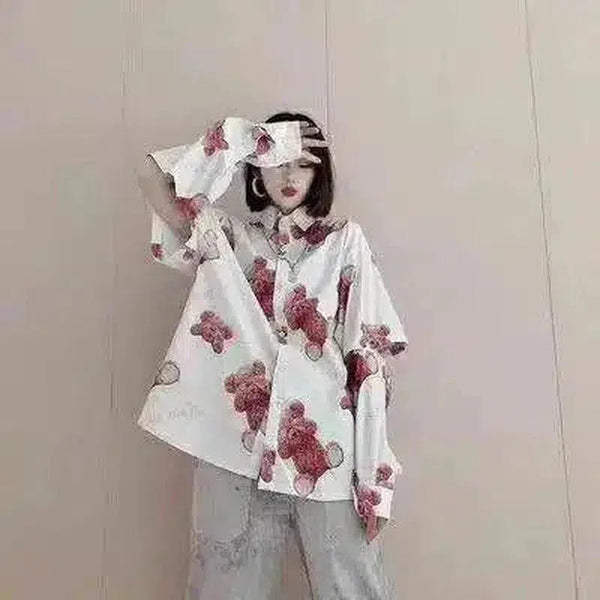 - Motif Bunga yang Indah: Tampil menonjol dengan motif bunga merah dan merah muda yang mencolok dengan latar belakang putih bersih, menambahkan sentuhan keindahan yang terinspirasi dari alam ke dalam lemari pakaian Anda.