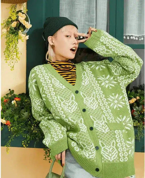 Cardigan Bermotif Rajut dengan Penutup Kancing
