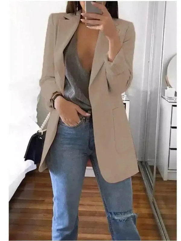 Kombinasi Blazer dan Celana Jeans Kasual yang Disesuaikan untuk Wanita