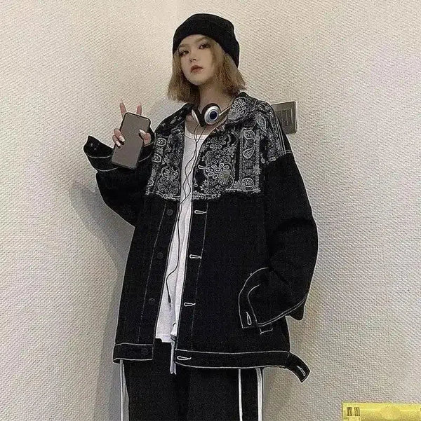 - Rincian desain: Pola paisley yang kontras pada panel atas, kancing depan, dan beberapa saku