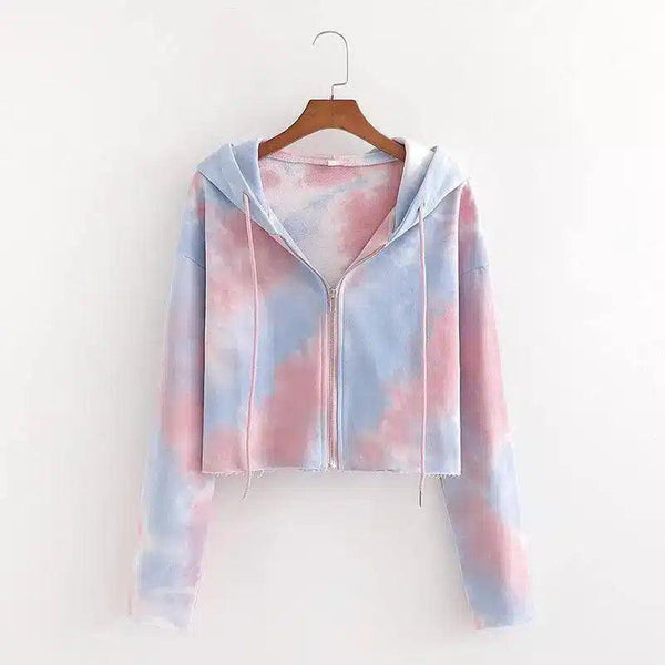 Kaus Berkerudung Zip-Up Berwarna Dasi