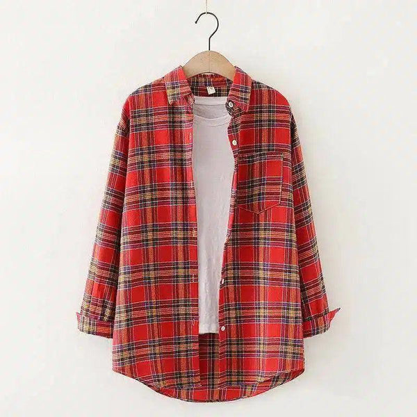 Kemeja Santai Lengan Panjang Kotak-kotak
