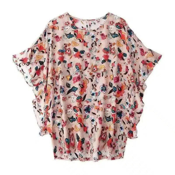 Blus Wanita Longgar Bermotif Bunga