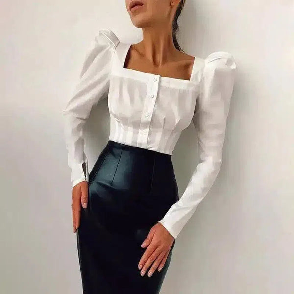 Blus Leher Kotak Lengan Puff