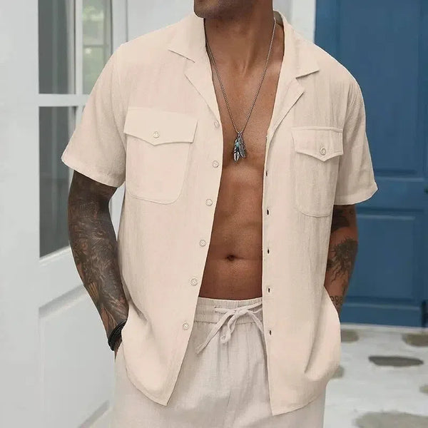 Kemeja Saku Warna Solid Longgar Santai Pria