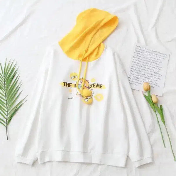 Hoodie yang menyenangkan ini memadukan kenyamanan dengan gaya yang unik, menampilkan campuran katun lembut dan tudung kuning yang cerah dan menarik. Motif karakter kartunnya yang unik sangat cocok untuk mereka yang suka mengekspresikan kepribadian mereka yang ceria melalui pakaian. Dengan potongan yang santai dan lengan panjang menjadikannya pilihan yang tepat untuk pakaian sehari-hari, sementara manset dan keliman bergaris menambahkan sentuhan gaya hoodie klasik. Mudah dirawat dan serbaguna dalam penggunaan