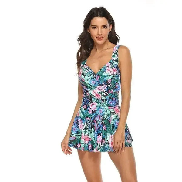 - Desain: Gaya one-piece dengan rok untuk menambah cakupan