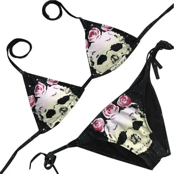 Baju renang bikini motif tengkorak gaya wanita baru Eropa