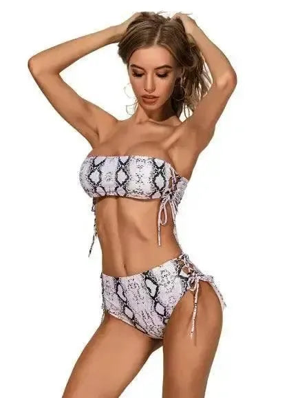 - Desain: Atasan bandeau tanpa tali untuk garis-garis kecokelatan yang minimal