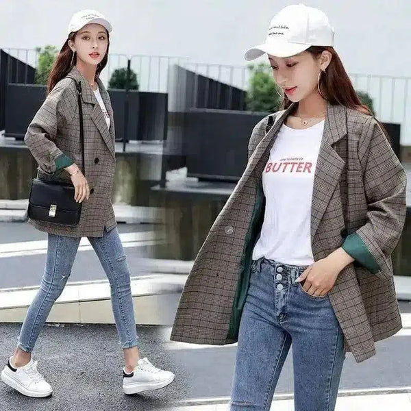 - Blazer Kotak-Kotak yang Chic: Tingkatkan penampilan Anda dengan blazer kotak-kotak yang canggih dan menjadi tren ini.