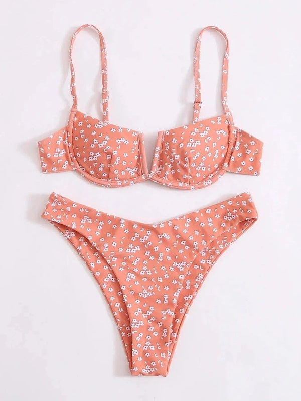 Lengkapi koleksi pakaian renang Anda dengan bikini bermotif bunga yang cantik dan bergaya ini, cocok untuk hari yang cerah di bawah sinar matahari.