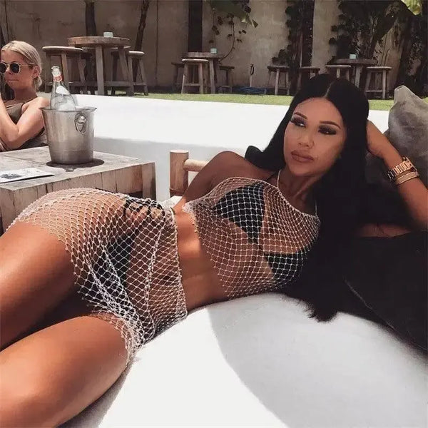 Jaring Pancing Tenunan Tangan Baju Renang Mengkilap Berlian Panas