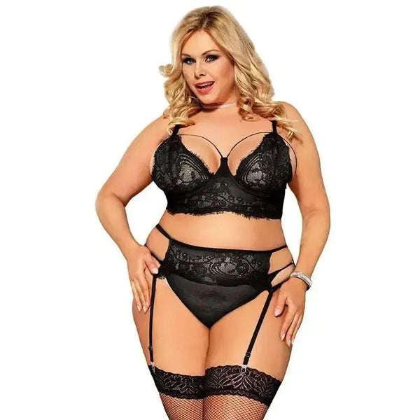 Setelan Pakaian Dalam Wanita Berpayudara Besar dengan Sabuk Garter Ukuran Besar