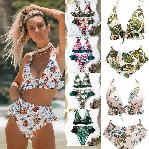 Baju renang bermotif bikini berpinggang tinggi yang diacak-acak