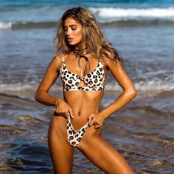- Potongan: Bikini dua potong, dengan atasan dan bawahan segitiga klasik