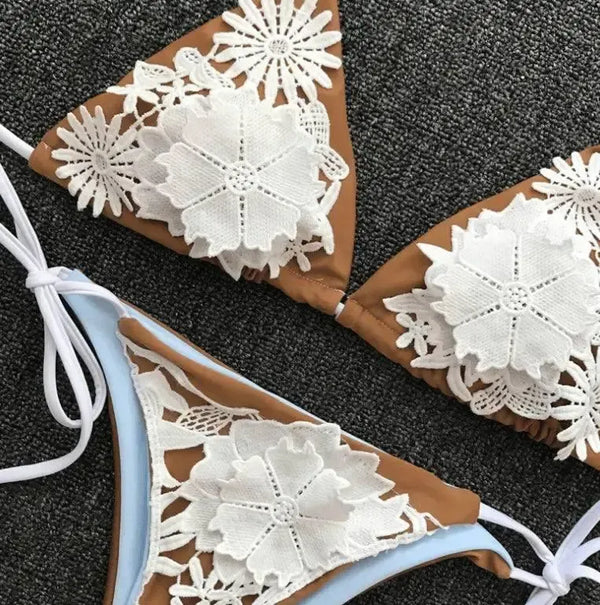 Bikini Maillot De Bain Femme Tali Pengikat Warna Murni