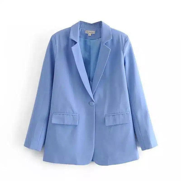 Pakaian Wanita Blazer Kancing Tunggal Warna Biru