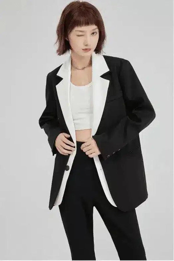 Blazer Gaya Tuxedo Wanita dengan Kerah Kontras