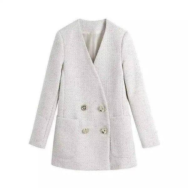 - Fit: Fit yang disesuaikan dengan siluet yang terstruktur