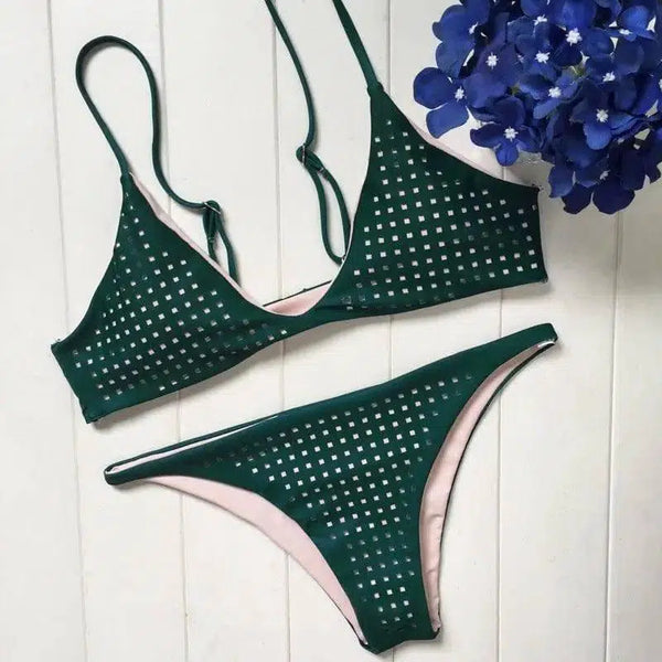 Pakaian Renang Bikini Tali Spaghetti Halter Hijau