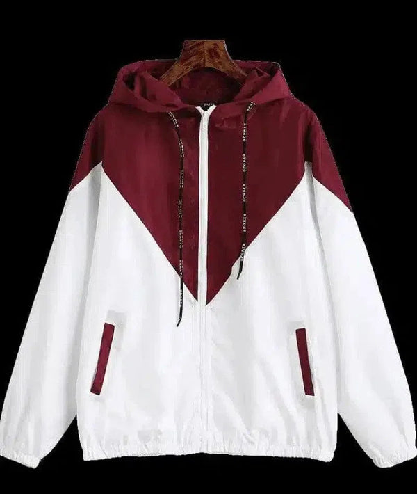 - Fitur tambahan: Desain blok warna, penutup depan berritsleting, saku samping dengan detail ritsleting
