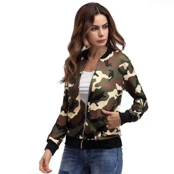 Jaket Zip-Up Kasual Motif Camo Wanita