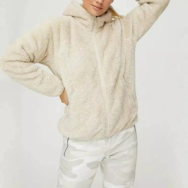 Hoodie Bulu Bulu Lengan Panjang Warna Solid Kasual