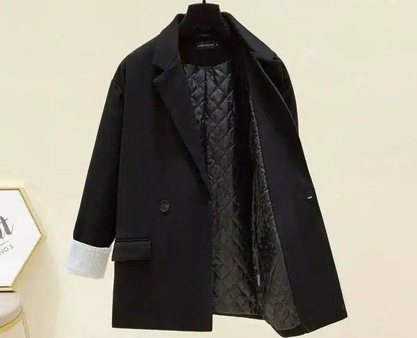 - Detail Tambahan:Breasted tunggal dengan penutup kancing depan dan saku dada; lapisan dalam dengan desain berlapis