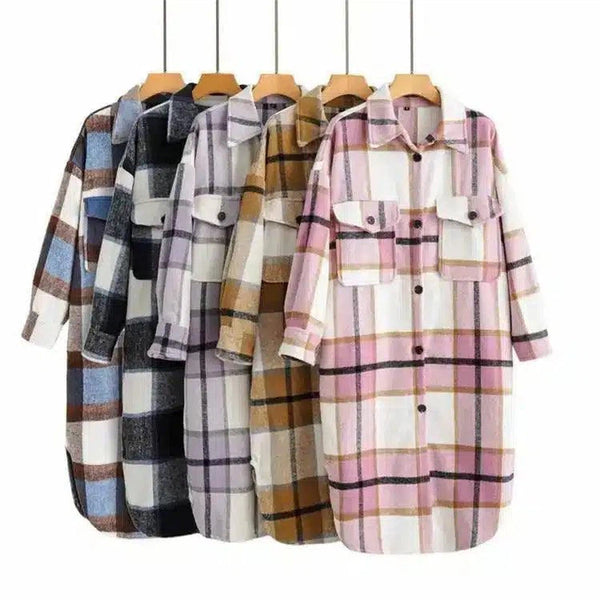 - Jenis Pakaian: Gaun kemeja kotak-kotak panjang