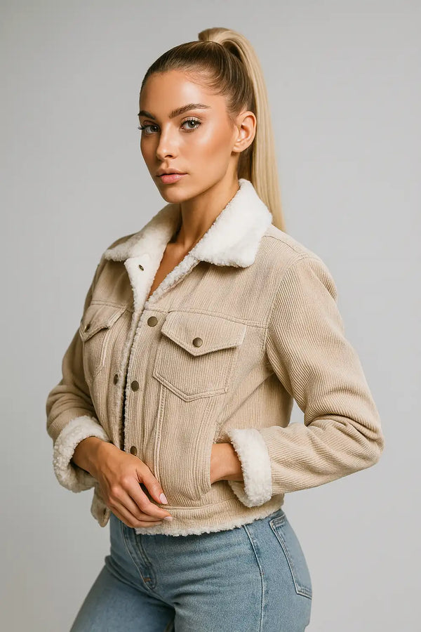 - Jenis Pakaian: Jaket korduroi yang bergaya