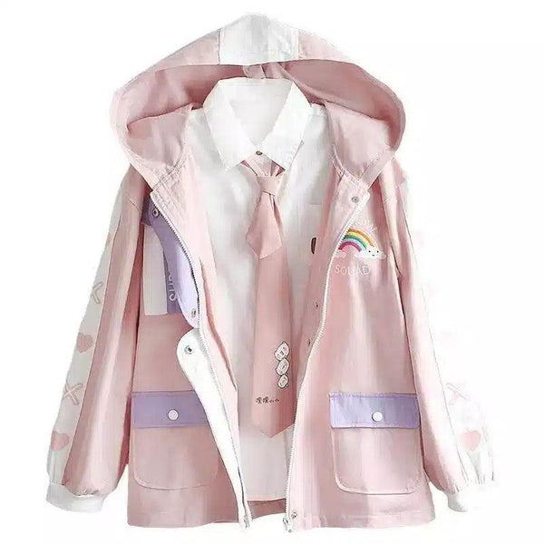Jaket Kasual Berkerudung dengan Tambalan Pelangi