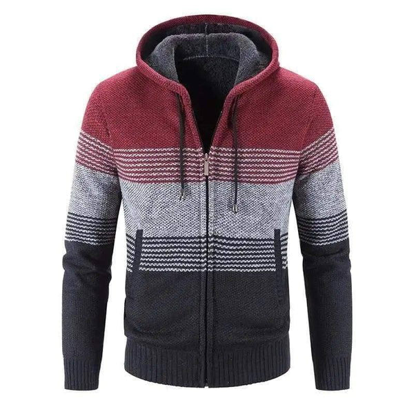 Pria Berkerudung Mantel Mantel Garis Pria Wol Ritsleting Tebal