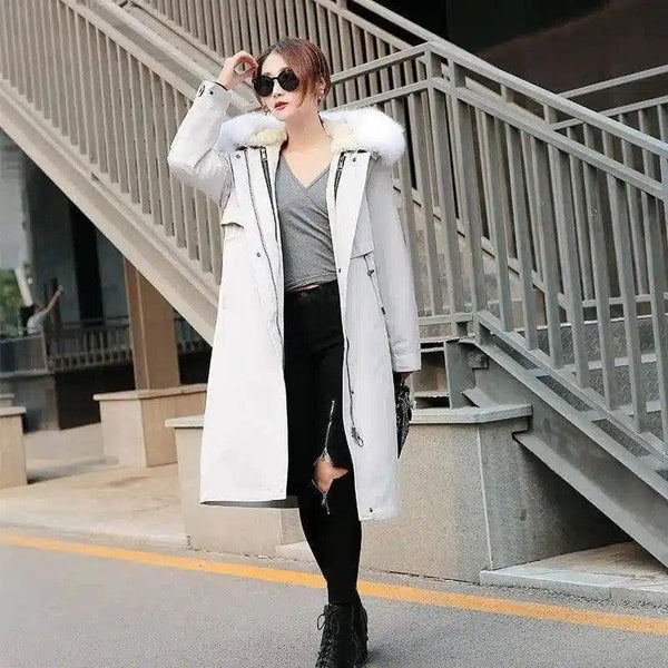 Mantel Musim Dingin dengan Tudung Trim Bulu