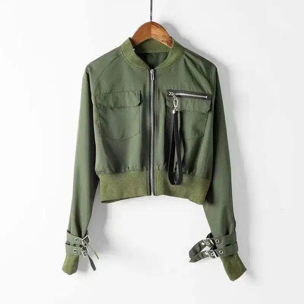 - Jenis Pakaian: Jaket bomber yang dipotong