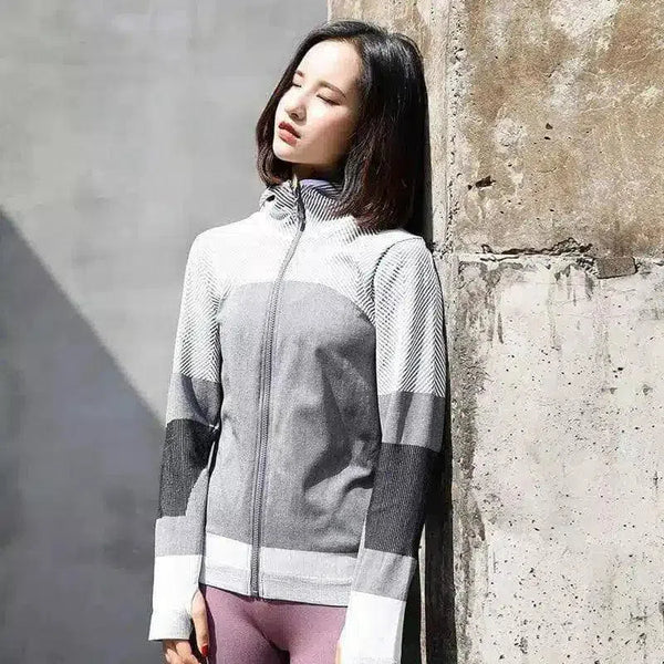 Jaket Atletik Ritsleting Wanita dengan Garis-garis