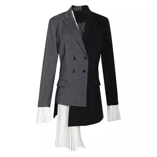 Blazer Berdada Ganda dengan Detail Pinggiran