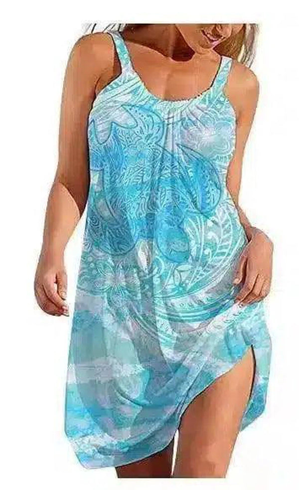 Gaun Penutup Pantai Bermotif Tanpa Lengan