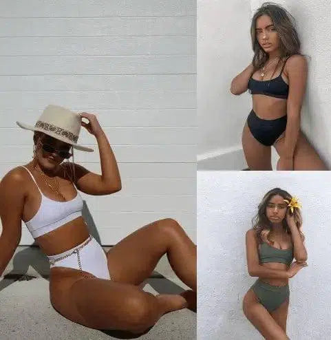 Piring terpisah multi-warna solid dengan pinggang tinggi yang ramping