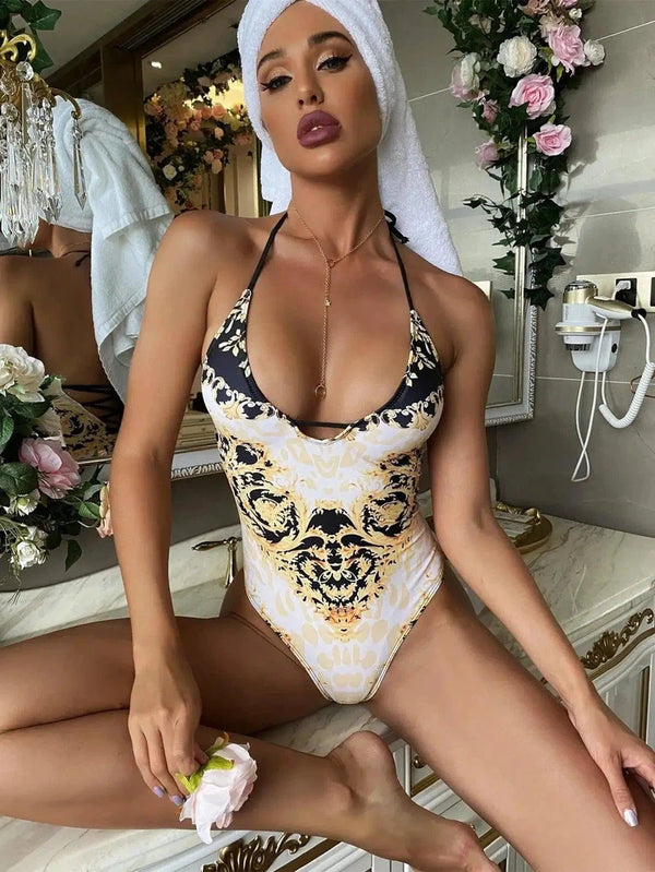 Bikini one-piece baju renang bermotif retro