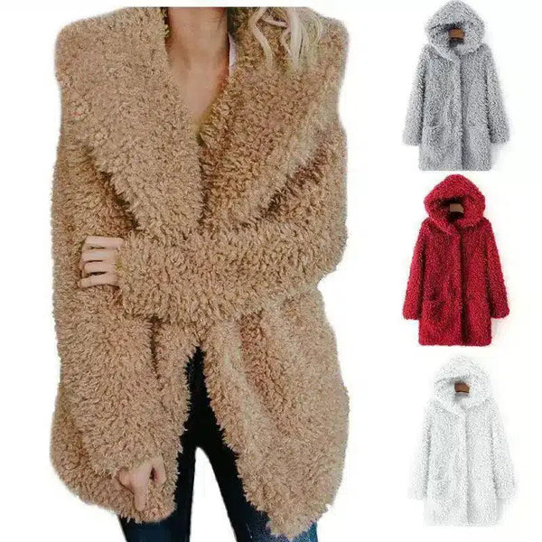 Mantel Musim Dingin Wanita Berkerudung Berbulu