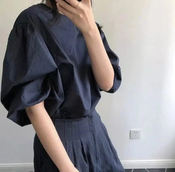 Set Blus Lengan Puff Celana Pinggang Tinggi