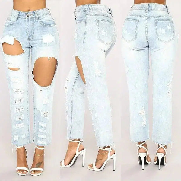 - Jenis Pakaian: Jeans berlubang yang berlebihan