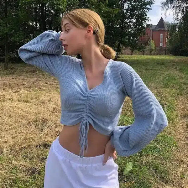 Atasan Crop Top Beraksen Biru Muda - Modis dan Nyaman