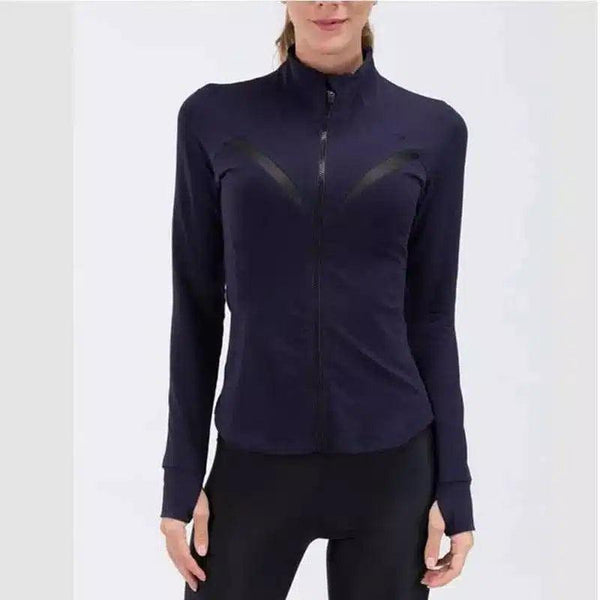 Jaket Setelan Yoga Latihan Kerah Berdiri Ritsleting Ritsleting Slim Fit