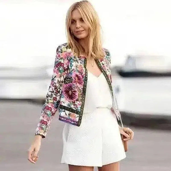 Jaket Kasual Wanita Motif Bunga
