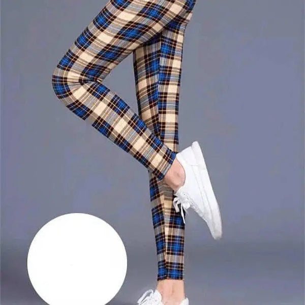 - Pola: Motif kotak-kotak klasik dalam warna krem, biru, dan hitam